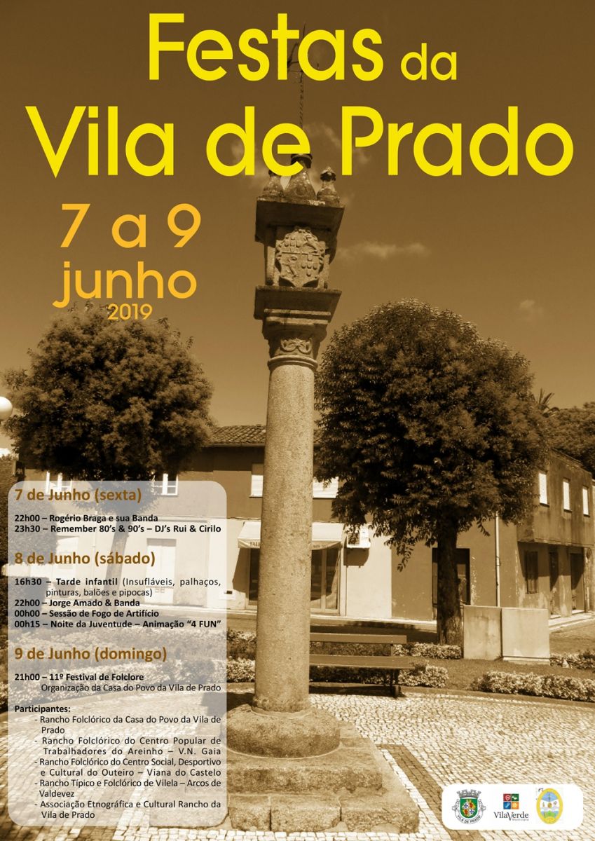 Os espetáculos de música ao vivo são um dos grandes destaques da edição deste ano Festas da Vila de Prado, que decorrem de 07 a 09 de junho. Pop, rock, latina, folclore... há opções para todos os gostos. Mas nem só da música vive a iniciativa. A tarde infantil, o fogo de artifício e as barraquinhas de 'comes e bebes' espalhadas pelo largo de S. Sebastião (vulgo Campo da Feira), que primam pelos petiscos e iguarias da gastronomia regional, são outros dos atrativos do cartaz. Esperam-se três dias de amizade convívio e muita diversão que permitem também estreitar laços e fortalecer o espírito de comunidade. As Festas da Vila de Prado afirmam-se ainda como um excelente veículo de divulgação e promoção da vila. A organização está a cargo da Junta de Freguesia da Vila de Prado, que conta com a colaboração de associações e coletividades locais.